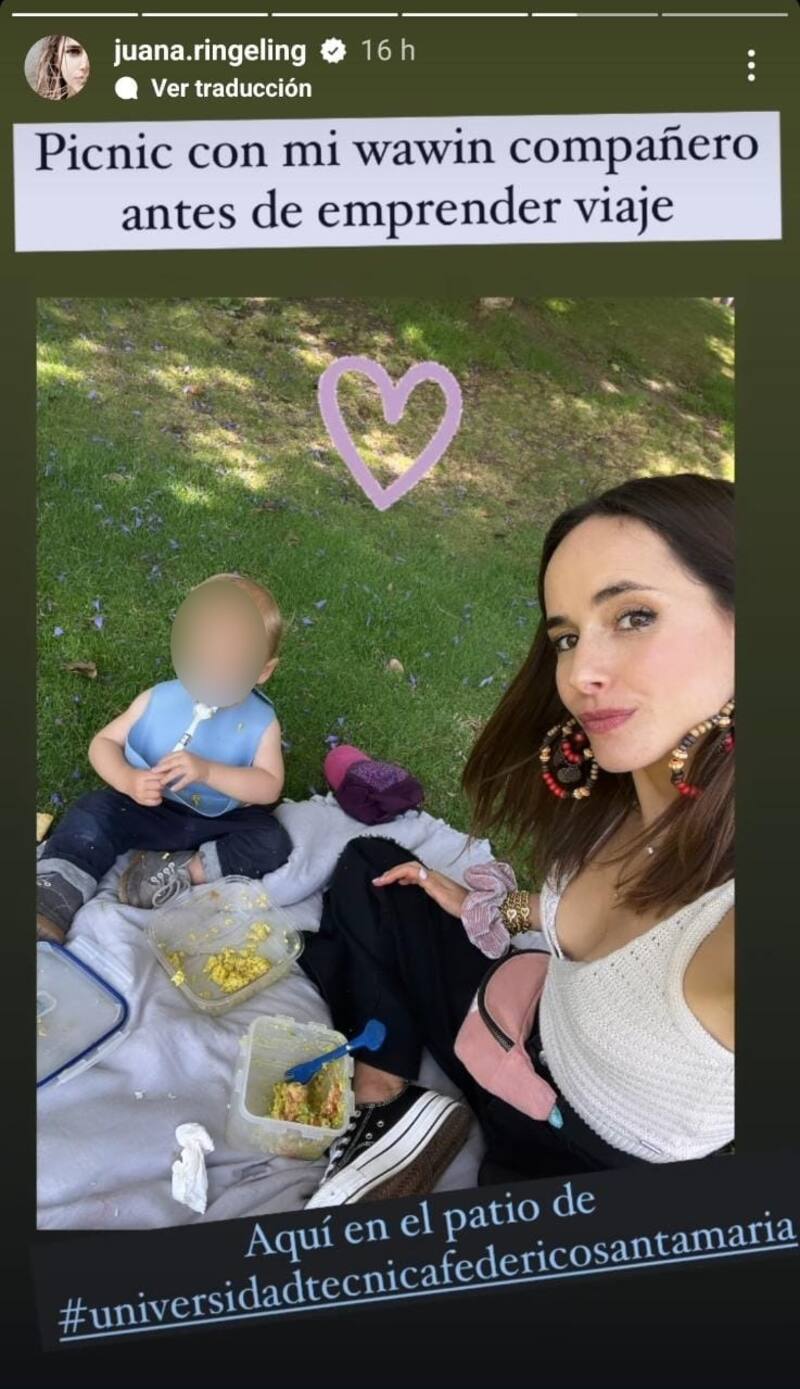 "Picnic con mi güagüin y compañero antes de emprender viaje", escribió Juanita Ringeling en una publicación en sus redes sociales.