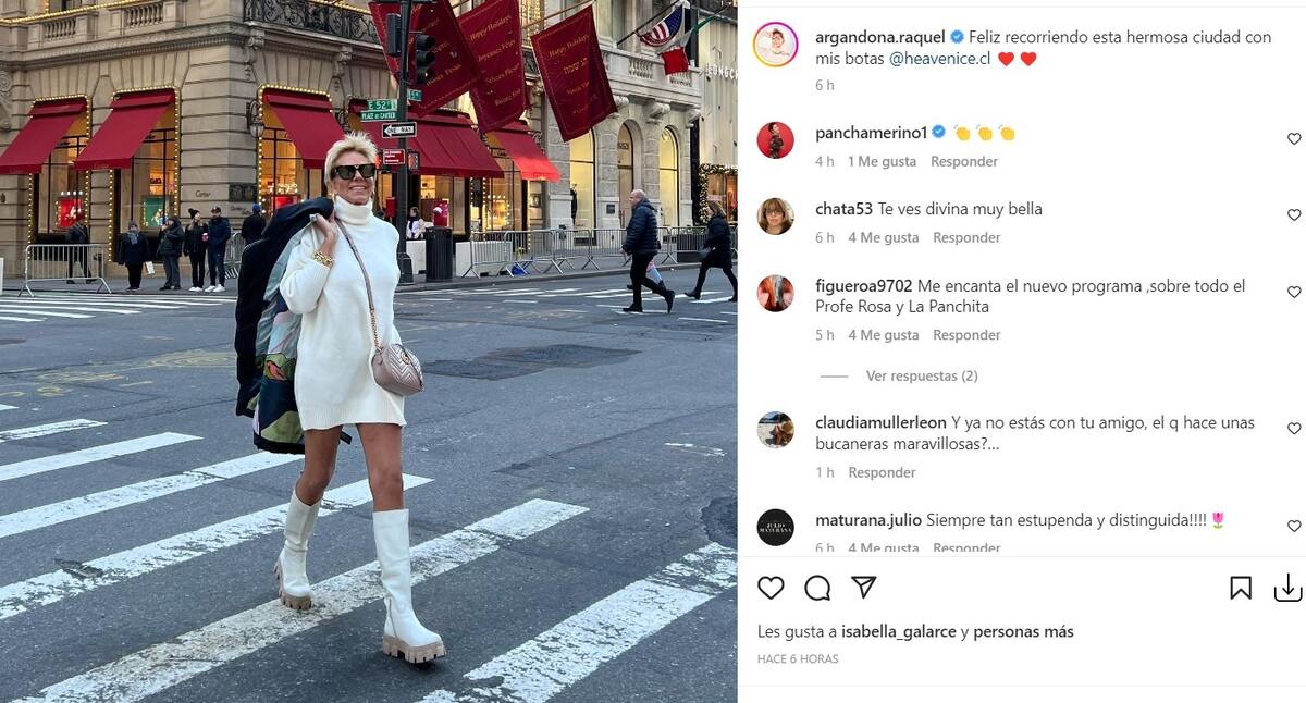 No obstante, durante la tarde de este día sábado, la "Quintrala" compartió una producida foto en su feed de Instagram. En esta aparece caminando en las calles de Nueva York y lo que más llamó la atención del registro, fue su particular look.
