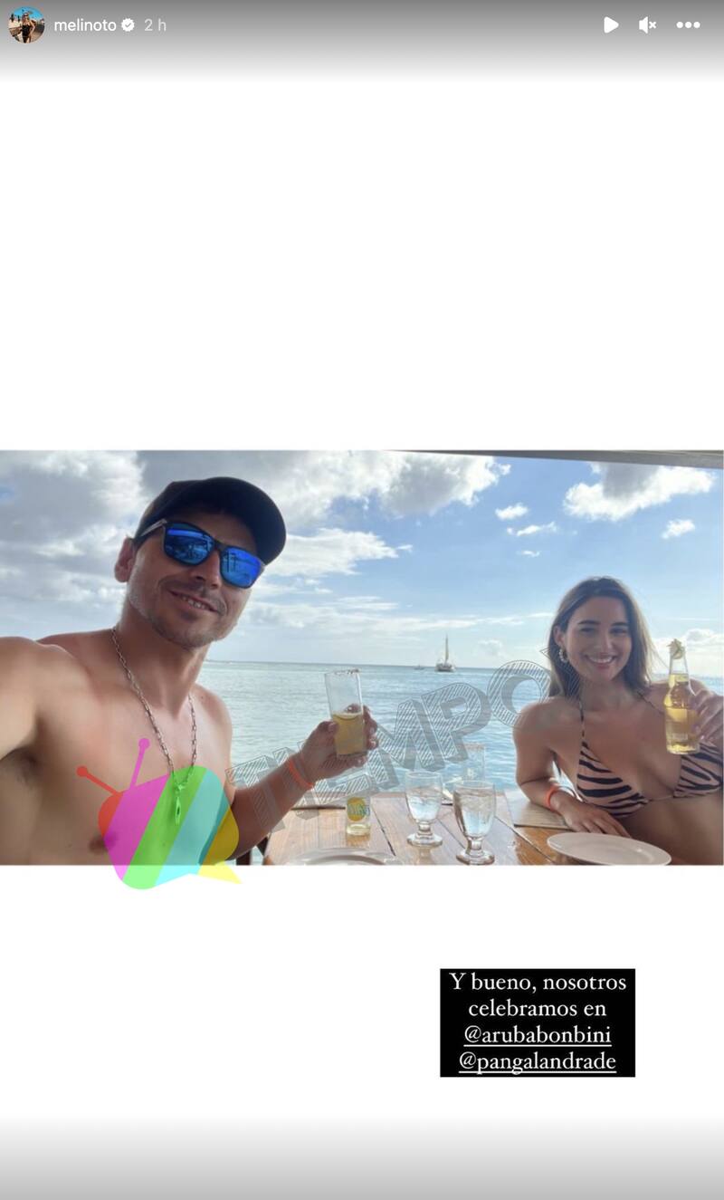 Por su parte, Melina Noto compartió una romántica postal, en la cual ambos posan en un restaurante frente al mar, brindando por sus vacaciones. "Y bueno, nosotros celebramos en ArubaBonbini",