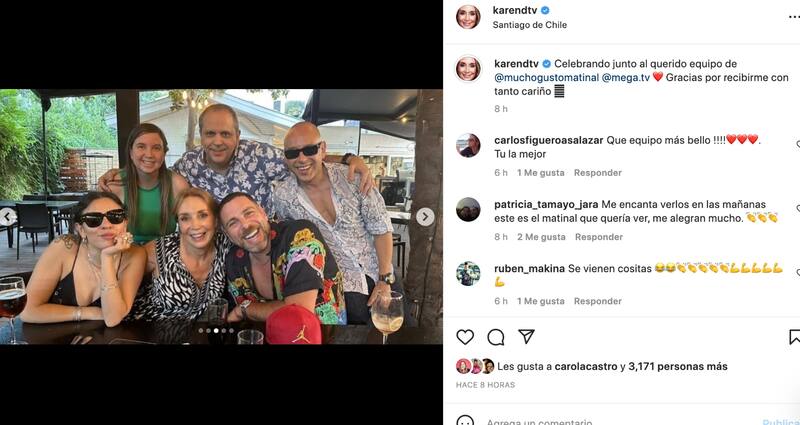 Karen Doggenweiler preparó una especial celebración durante este jueves 8 de octubre para celebrar en grande su llegada a Mega junto a sus queridos colegas del "Mucho Gusto", carreteando con varios compañeros de espacio, como José Antonio Neme, Jaime Leyton, Andrés Caniulef y más.
