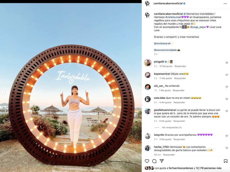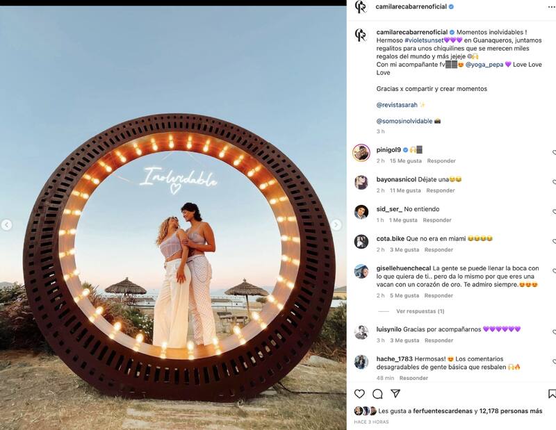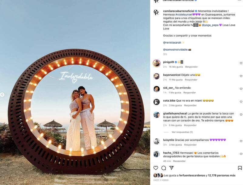 La exMiss Chile exhibió una serie de postales en su cuenta de Instagram, en las cuales se le ve posando junto a su enamorada en una gran figura circular que tenía escrito con luces la palabra "Inolvidable".