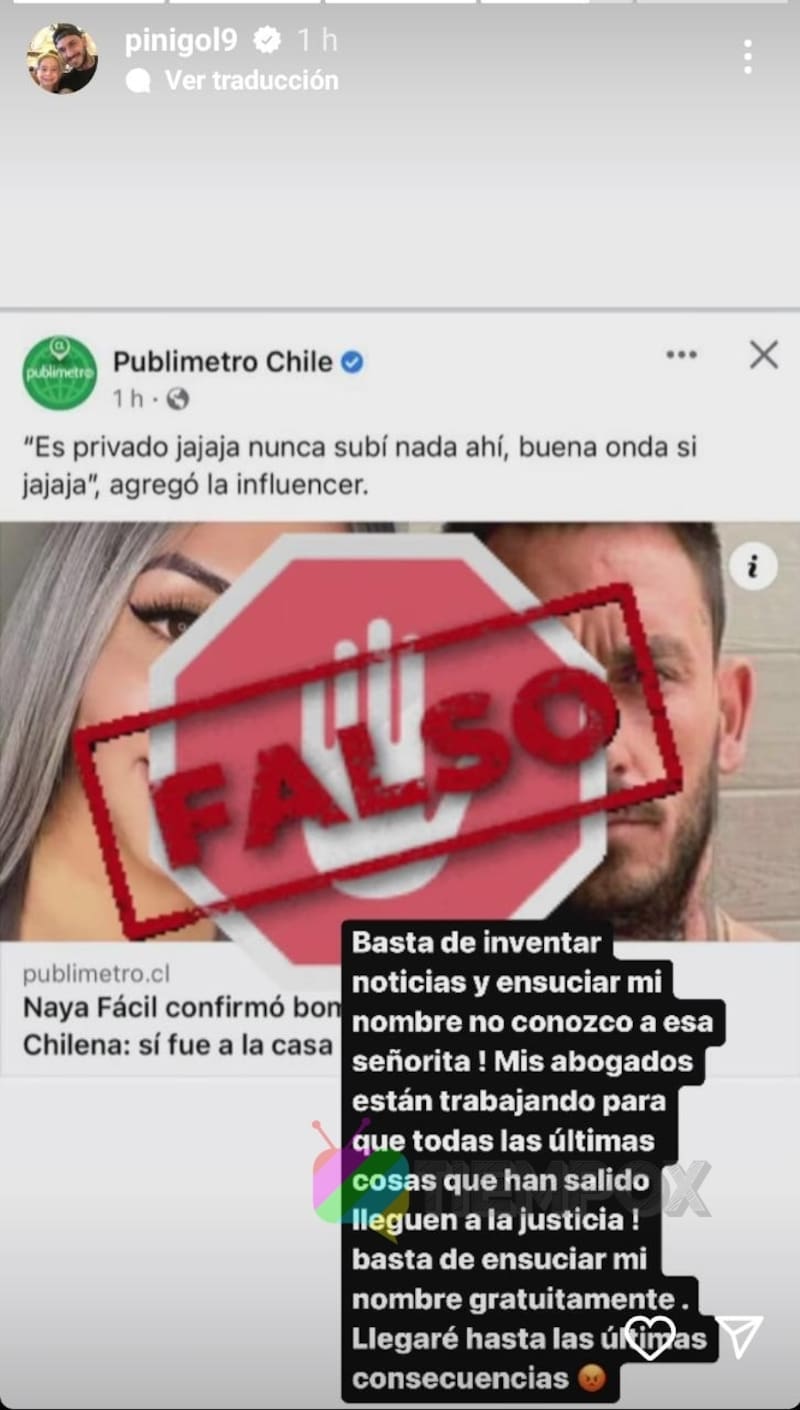 "Basta de inventar noticias y ensuciar mi nombre, no conozco a esa señorita. Mis abogados están trabajando para que todas las cosas han salido lleguen a la justicia. Basta de ensuciar mi nombre gratuitamente. Llegaré hasta las últimas consecuencias", fueron las palabras del rostro de TVN.