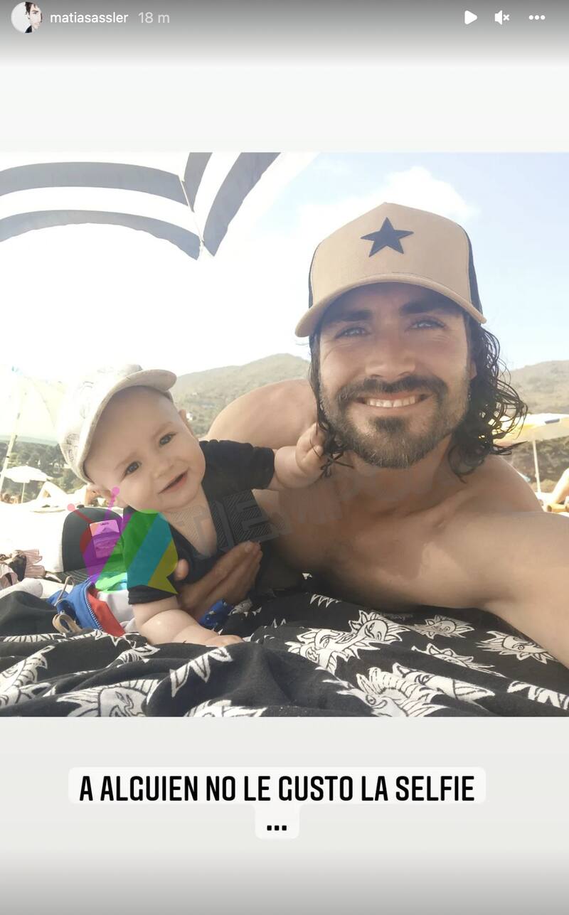 "A alguien no le gustó la selfie", escribió Matías Assler, por la acción que cometió su pequeño hijo Aurelio, fruto de su relación con Juanita Ringeling.