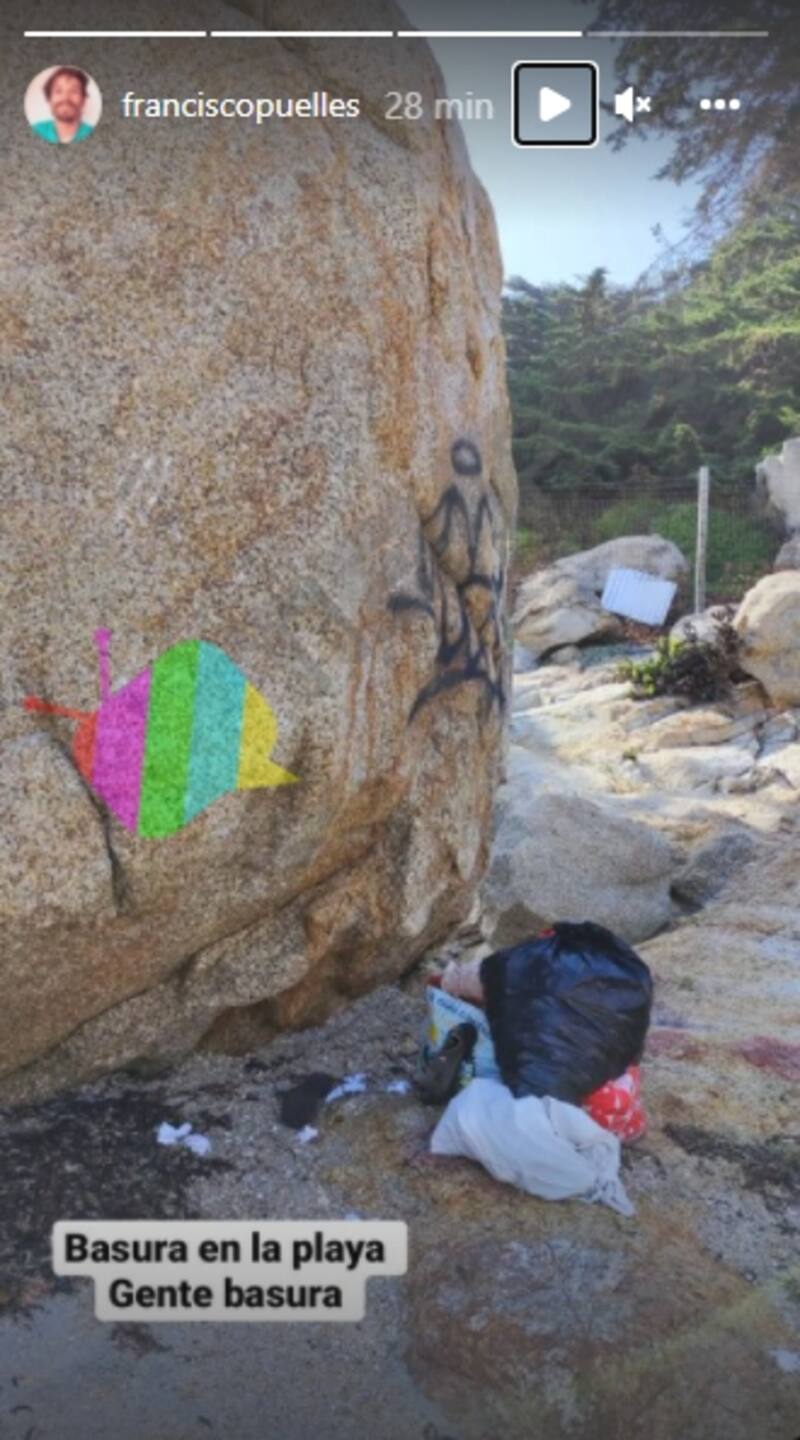 Por lo mismo, el ex”Calle 7” y actor de Mega publicó un par de historias en Instagram mostrando el daño que se le había hecho a una playa en la que se encontraba, donde se ven varias rocas rayadas y un basural cerca del mar.