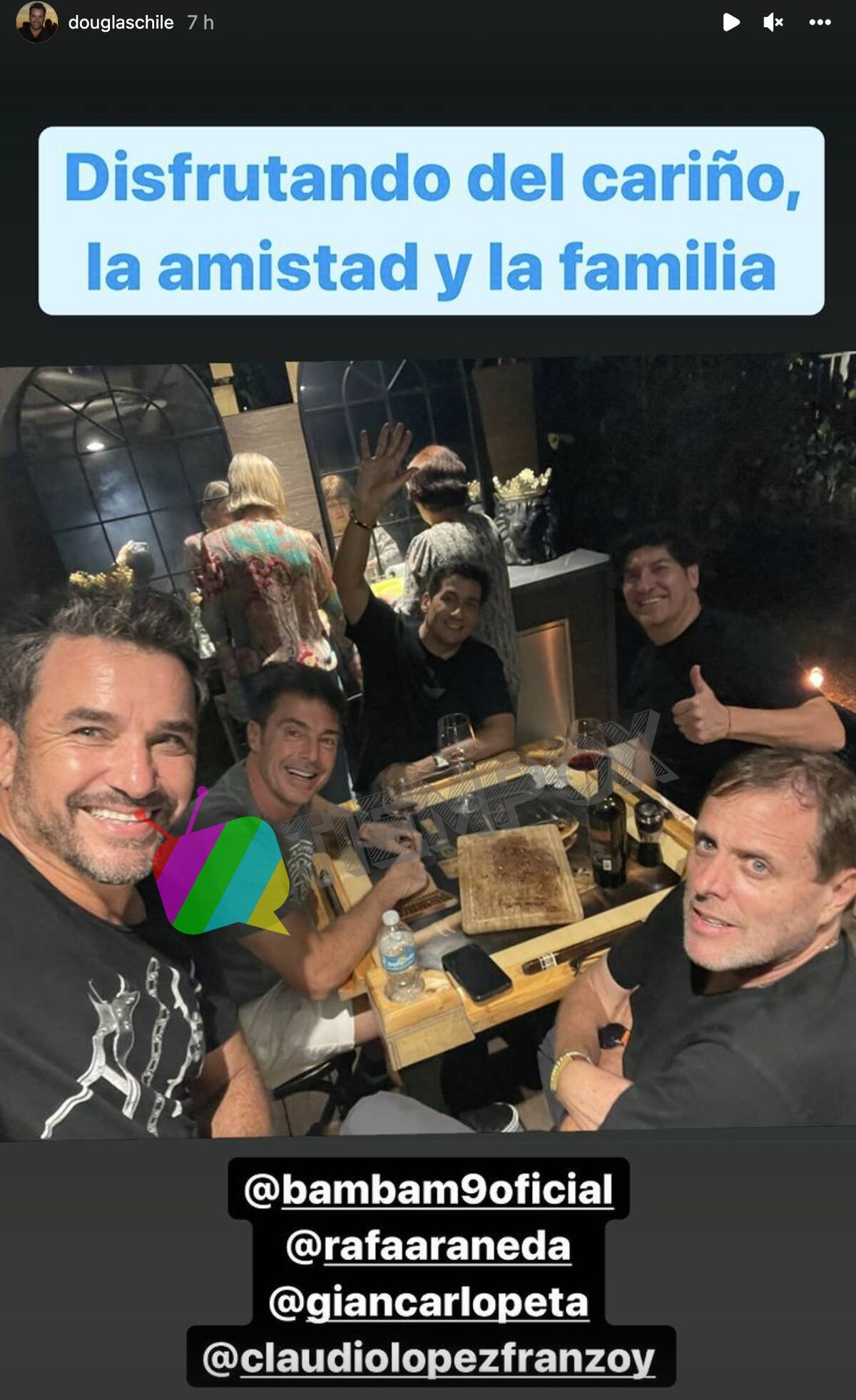 "Disfrutando del cariño, la amistad y la familia", escribió Douglas junto a la publicación que realizó en sus historias de Instagram.