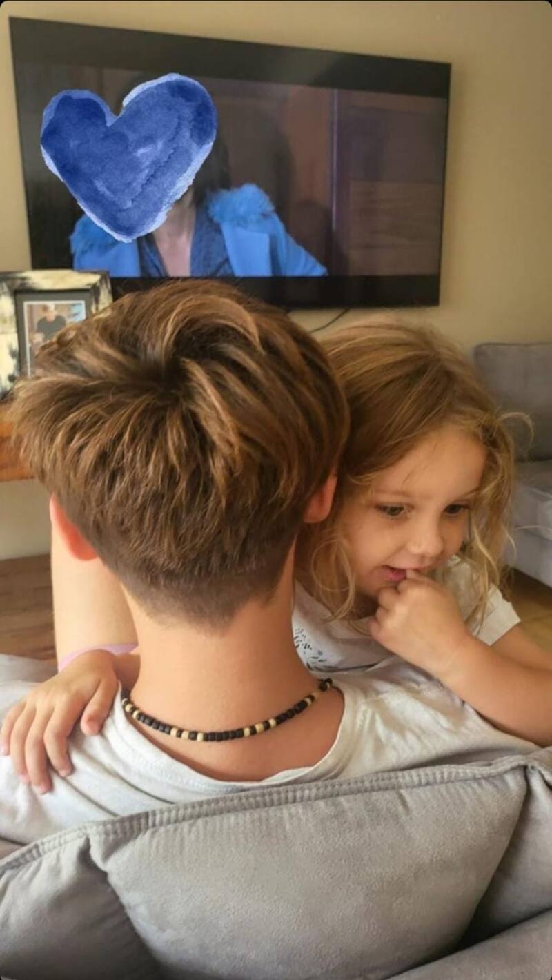 Además, en la imagen anterior, se aprecia a otro de sus hijos con su hermana, viendo televisión y compartiendo en familia durante la tarde de este sábado.