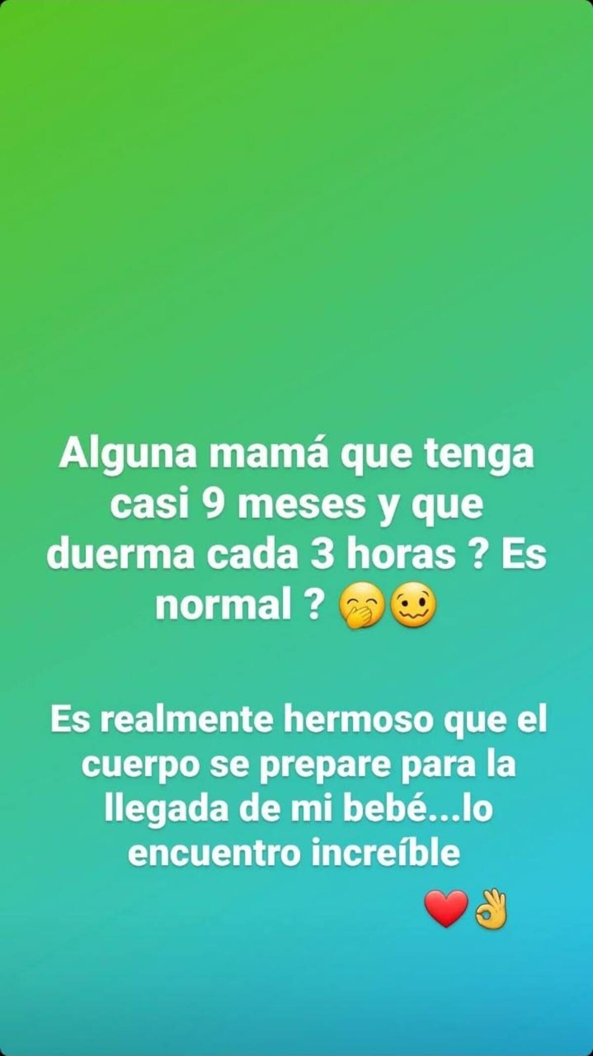 No obstante, esta no fue la única publicación que hizo al respecto. Luego, en otra historia, realizó una consulta sobre la maternidad y volvió a mostrarse ilusionada y expectante con la llegada de su primogénita.