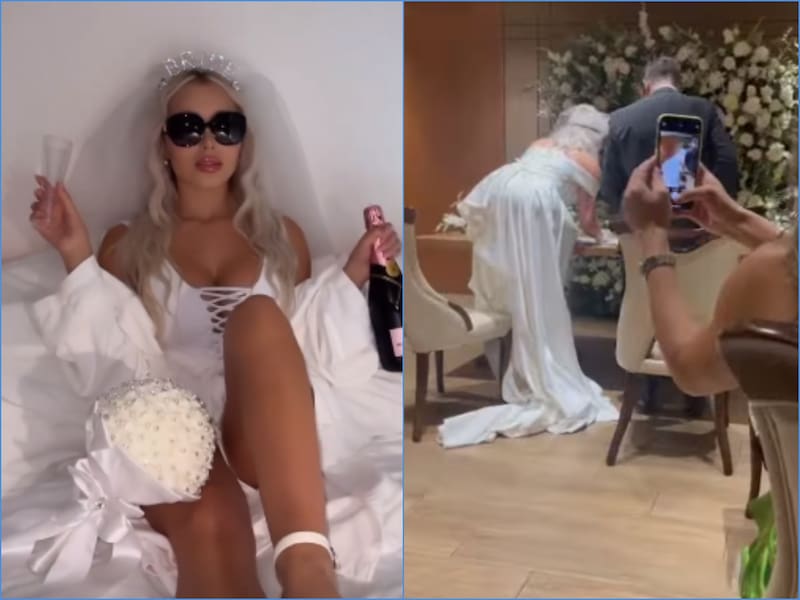 "Te amo", respondió Daniella Chávez, mostrando un video de la fiesta, donde se pueden ver sus dos vestidos de novia, la limusina que la llevó y la gran celebración.