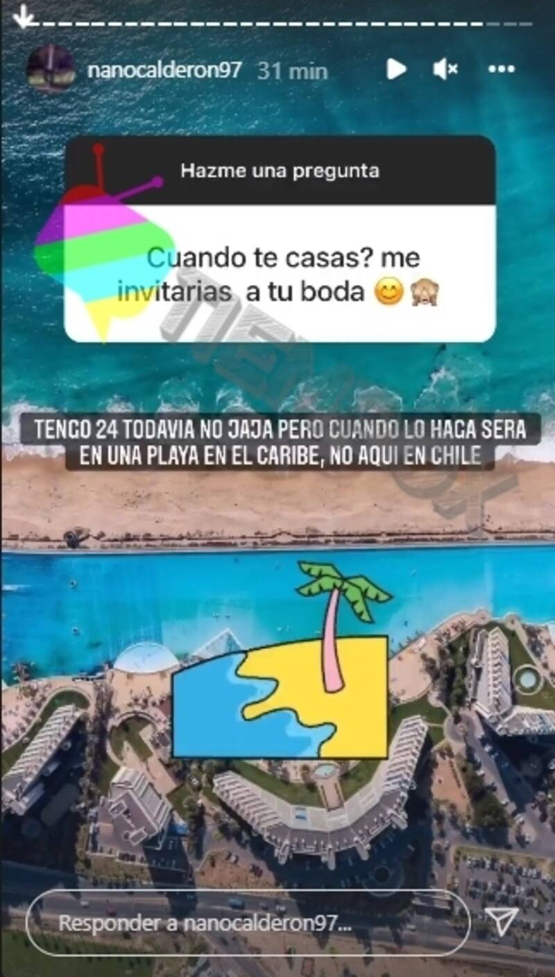 "Tengo 24, todavía no. Pero cuando lo haga será en una playa del Caribe, no aquí en Chile", señaló Nano Calderón, respondiendo a su fanático.
