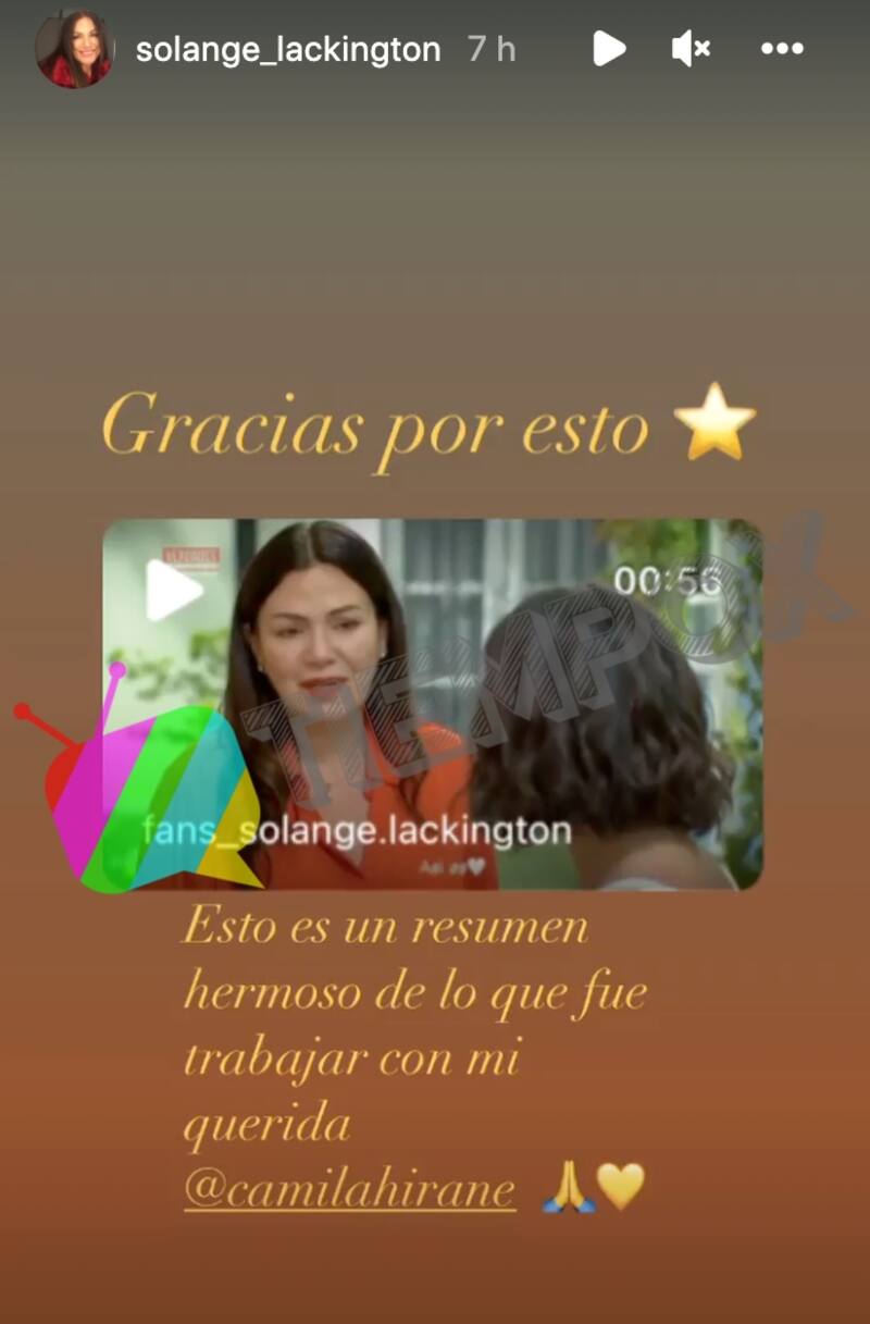"Esto es un resumen hermoso de lo que fue trabajar con mi querida Camila Hirane", escribió Solange Lackington junto al registro, donde etiquetó a la actriz.