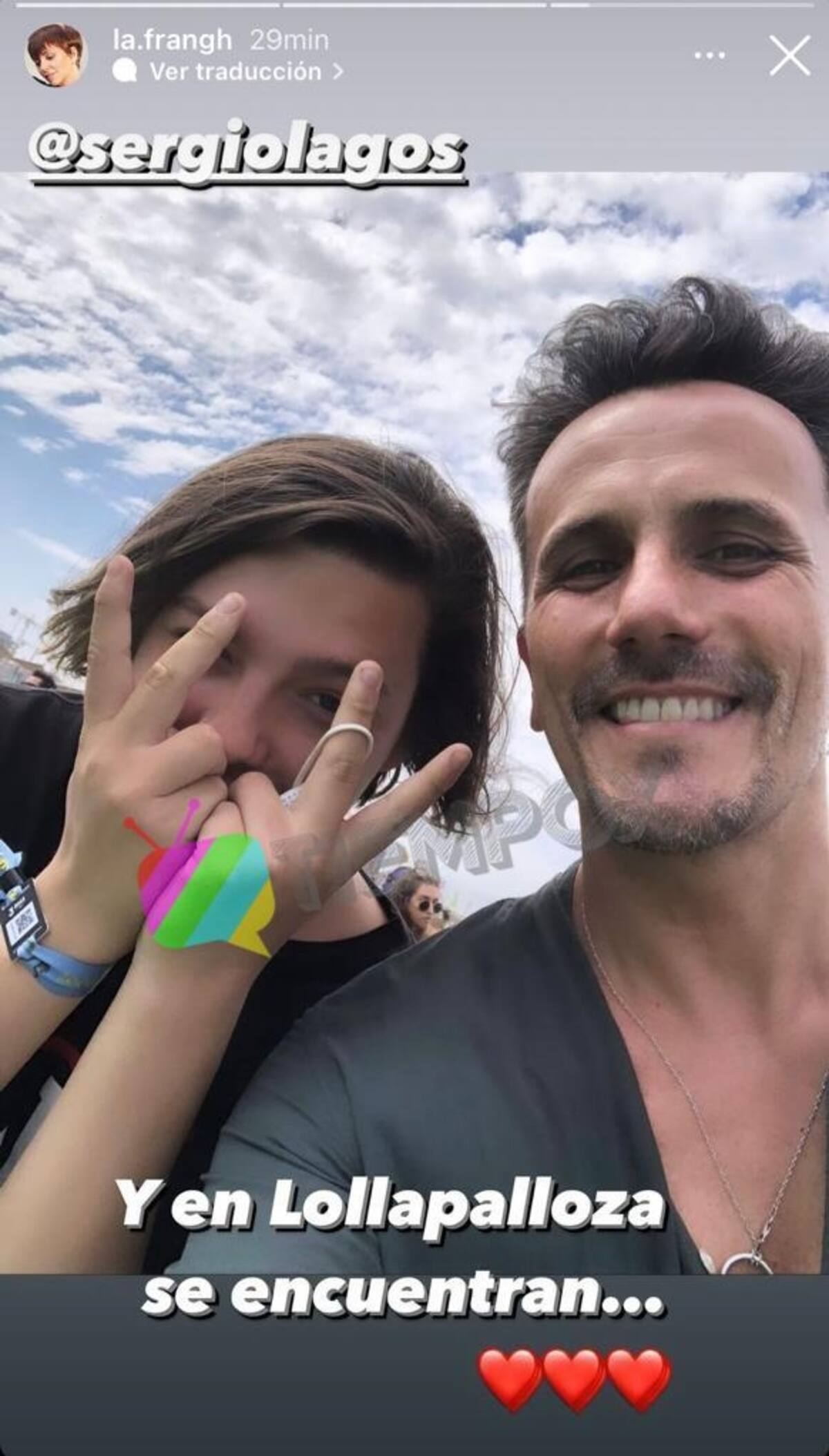 "Y en Lollapalooza se encuentran", comentó Fran García-Huidobro junto a la fotografía de su retoño con su compañero del estelar de Canal 13.