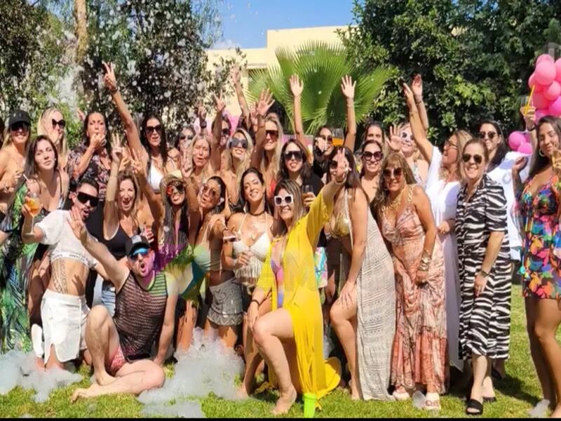 La "fiera" se mostró feliz disfrutando de la celebración de sus 41 años solo en compañía de mujeres y con la especial presencia de Andrés Baile, ex "Mekano" que llegó con "Tu carrito gourmet" al festejo.