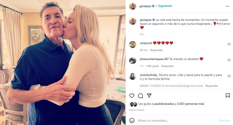 "La vida está hecha de momentos. Un momento puede durar un segundo o más de lo que nunca imaginaste", escribió Gissella Gallardo en la foto que recibió el cariño de sus seguidores y varios mensajes de ánimo para su papá.
