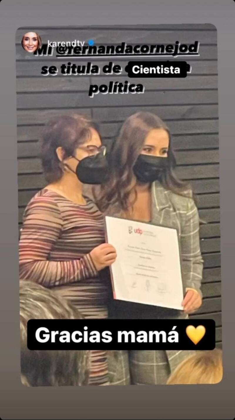 "Mi Fernanda Cornejo se titula de cientista política. ¡Felicidades! Qué orgullo. Te amo", expresó Karen Doggenweiller en su red social.