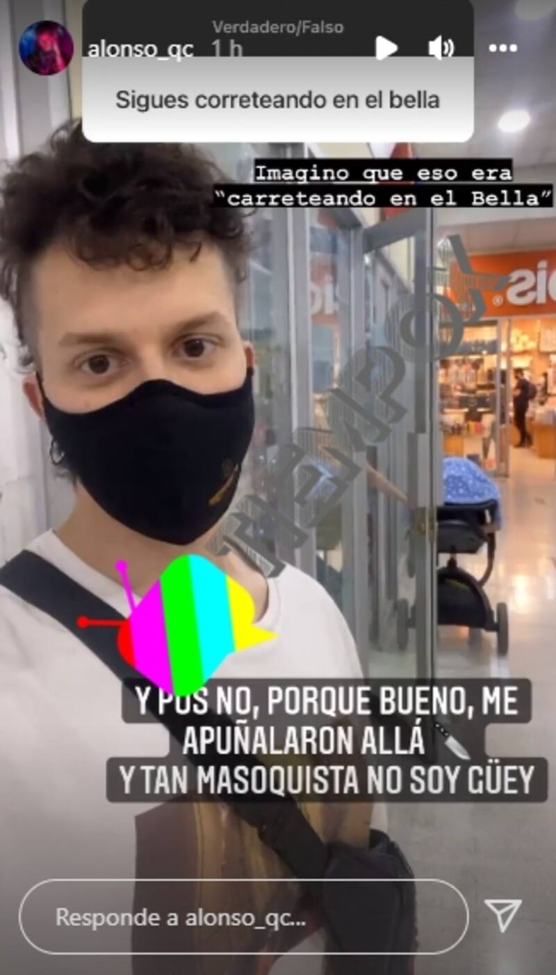 Pero la respuesta de Alonso Quintero a esta pregunta se lo tomó con bastante humor: "Pos no, porque bueno, me apuñalaron allá. Y tan masoquista no soy, guey".