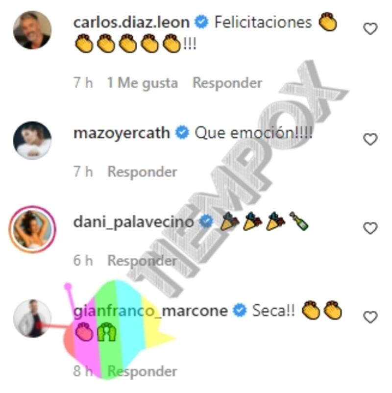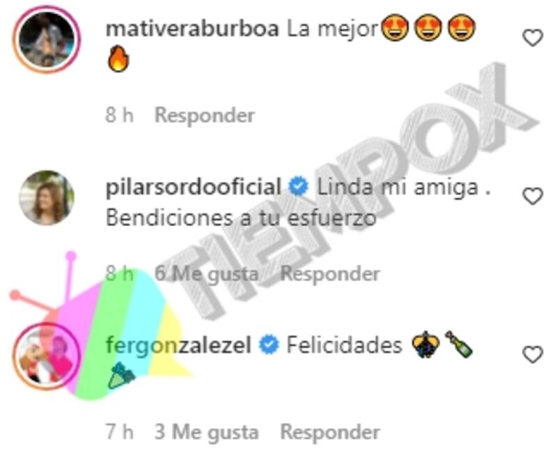 Una de las primeras en escribirle fue Priscilla Vargas, con quien trabaja en el programa "Aquí Somos Todos'', quien la felicitó por su logro, señalando que," tienes toda mi admiración. Una mujer inteligente, empoderada, alegre y llena de energía. Eres un real aporte para la sociedad. Para mí es un privilegio trabajar junto a ti. ¡Que sigan los éxitos! Te los mereces".