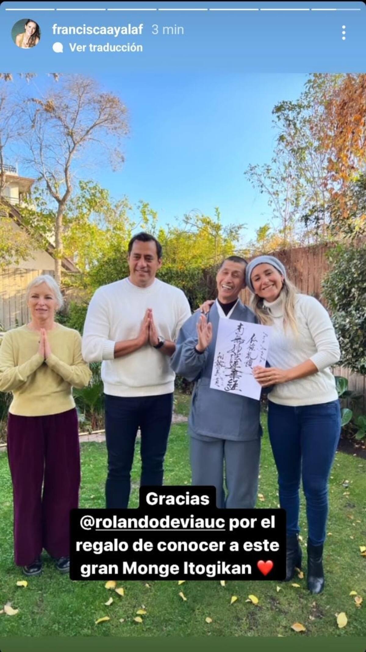 "Gracias por el regalo de conocer a este gran monje Itogikan", expresó Fran Ayala en sus redes sociales, dejando en claro el importante momento que está teniendo, especialmente por la actividad realizada.