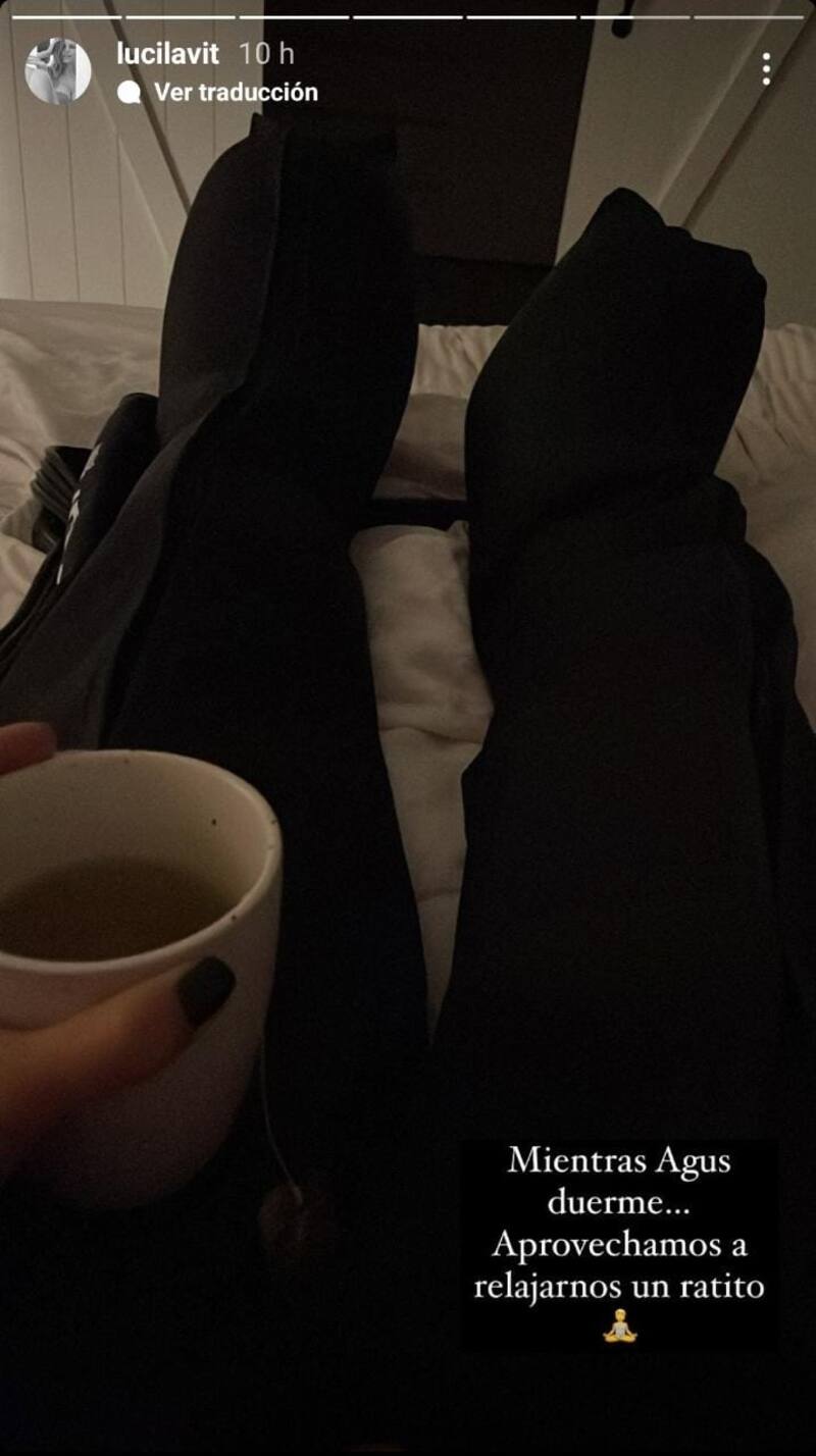 "Mientras Agus duerme... Aprovechamos a relajarnos un ratito", expresó Lucila Vit en ese momento de distensión, todo ello en medio de su día a día.