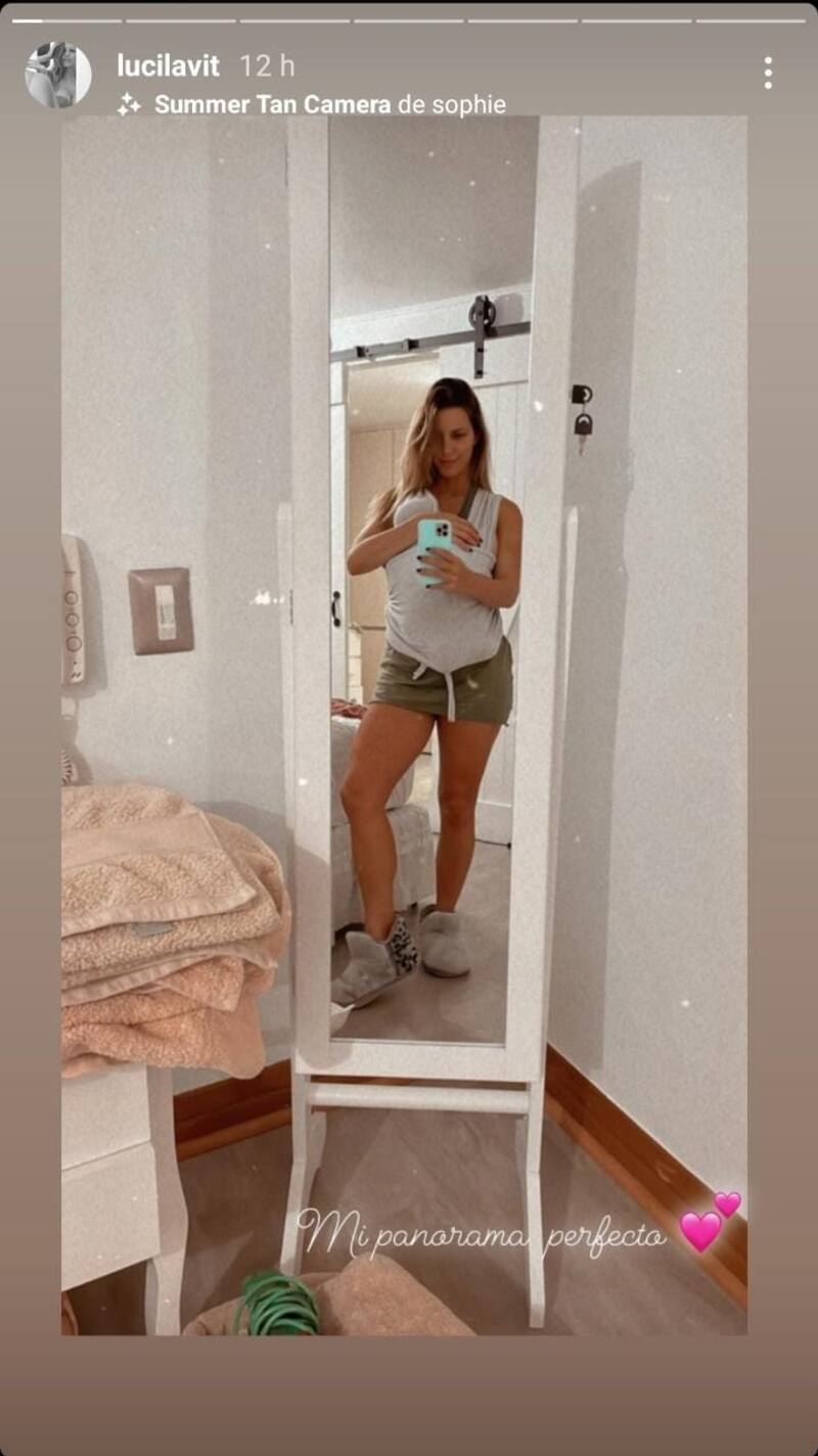"Mi panorama favorito", escribió Lucila Vit en su cuenta de Instagram, esto mientras sostiene a Agustina en sus brazos y se toma una selfie frente a un espejo.