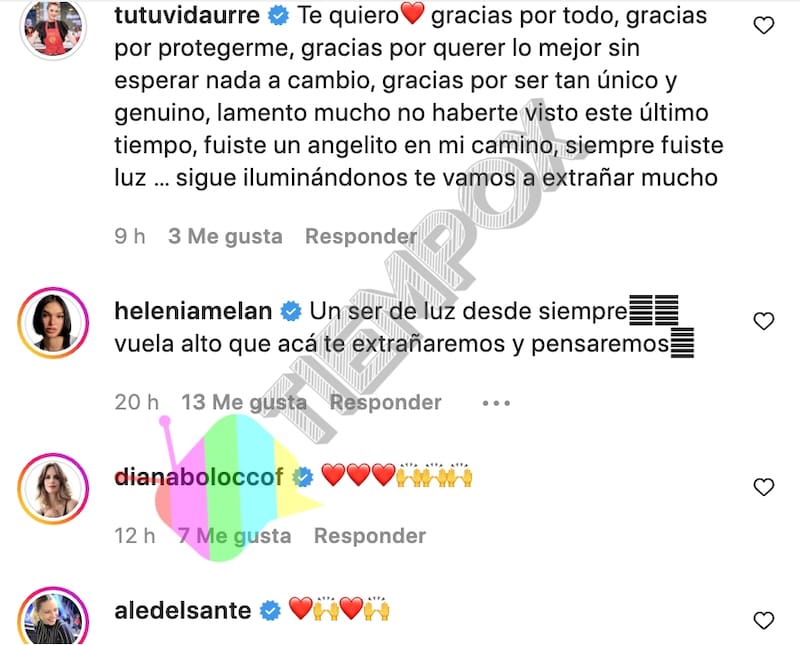 "Te quiero. Gracias por todo, gracias por protegerme, gracias por querer lo mejor sin esperar nada a cambio. Gracias por ser tan único y genuino. Lamento mucho no haberte visto este último tiempo, fuiste un angelito en mi camino, siempre fuiste luz… Sigue iluminándonos. Te vamos a extrañar mucho", le comentó.