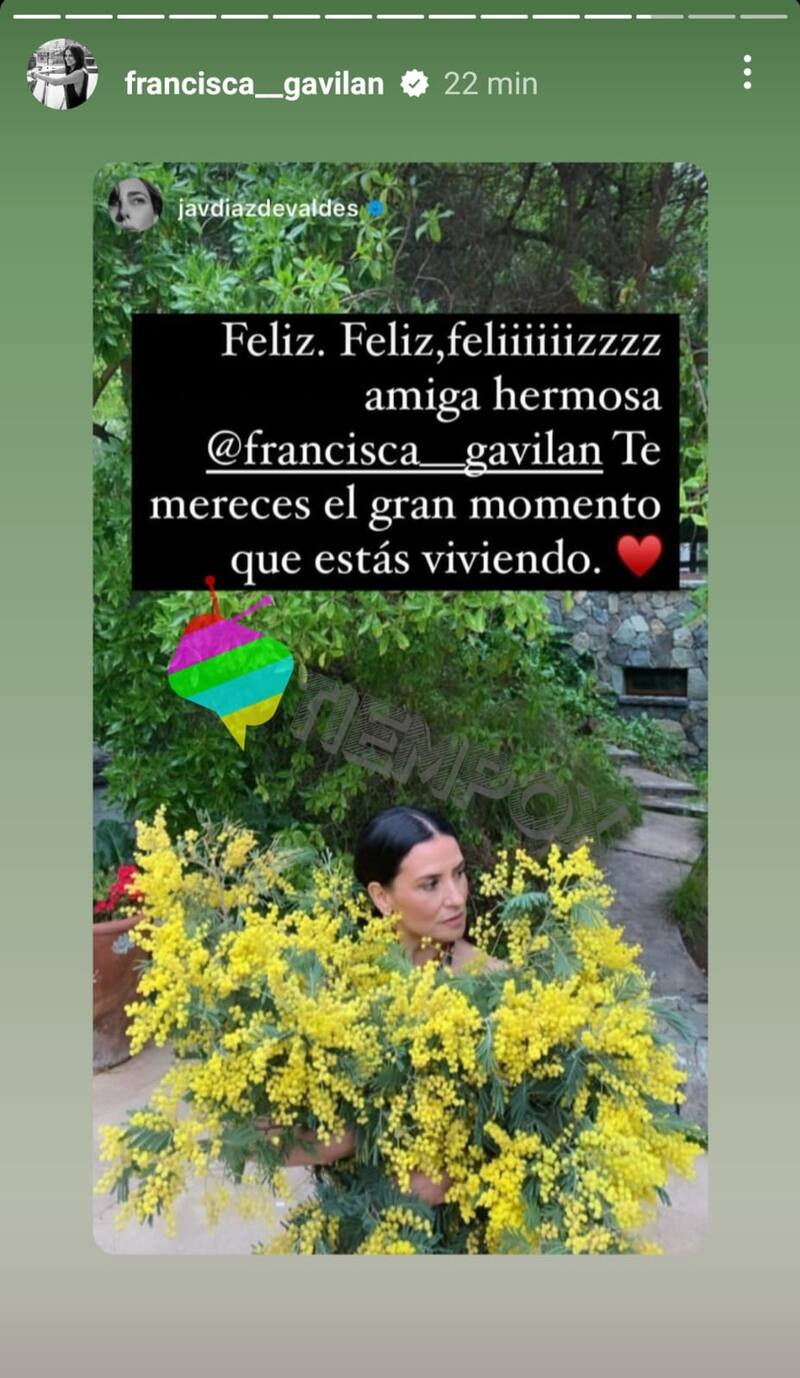 Javiera Díaz de Valdés también estuvo presente. "Feliz, Feliz, Feliz. Amiga hermosa, te mereces el gran momento que estás viviendo", expresó.