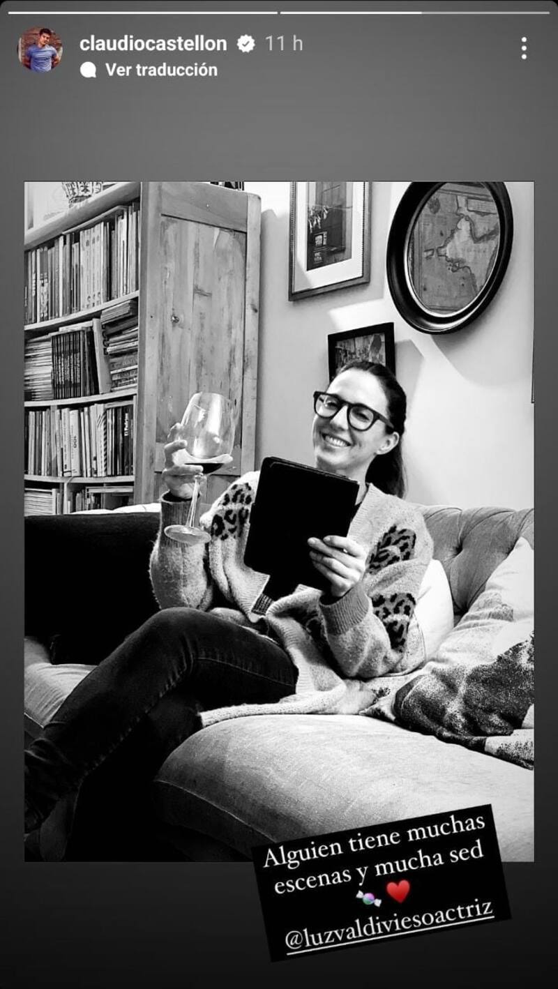 Asimismo, en la imagen que compartió el actor se aprecia a Luz Valdivieso precisamente con una tablet, presuntamente estudiando algún tipo de guion, y sosteniendo una copa de vino en su otra mano.