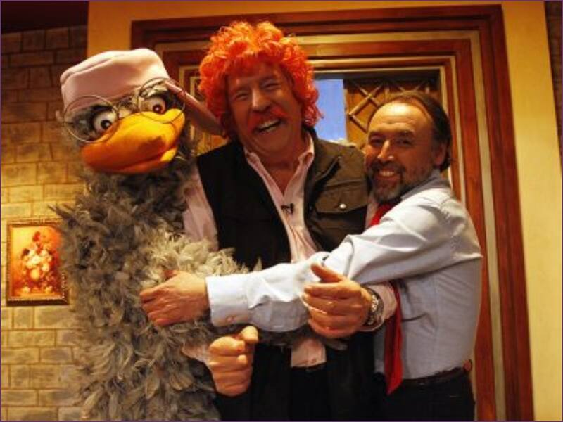 En la postal se ve cómo los tres humoristas aparecen disfrutando de exquisitas preparaciones y cada uno posa brindando con un trago en su mano.
