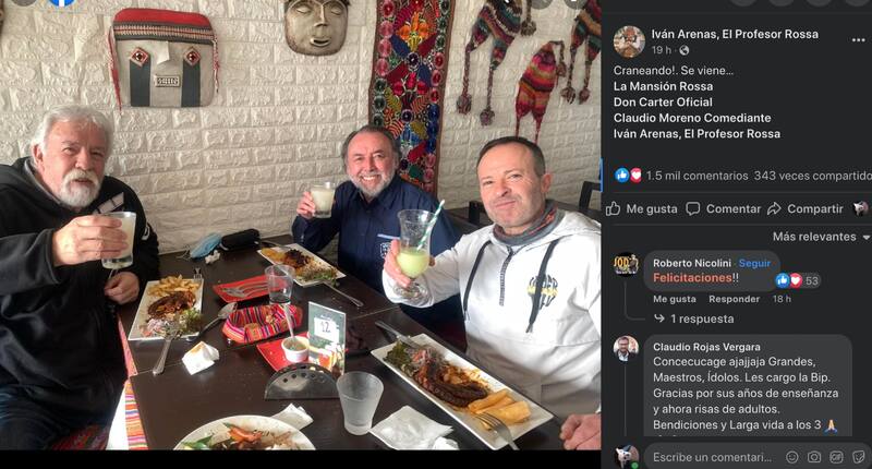 Y horas antes de que la noticia de Iván Arenas se diera a conocer, el mismo humorista compartió una fotografía en Facebook del almuerzo que disfrutó junto a Claudio Moreno, "Guru Guru" y a "Don Carter".