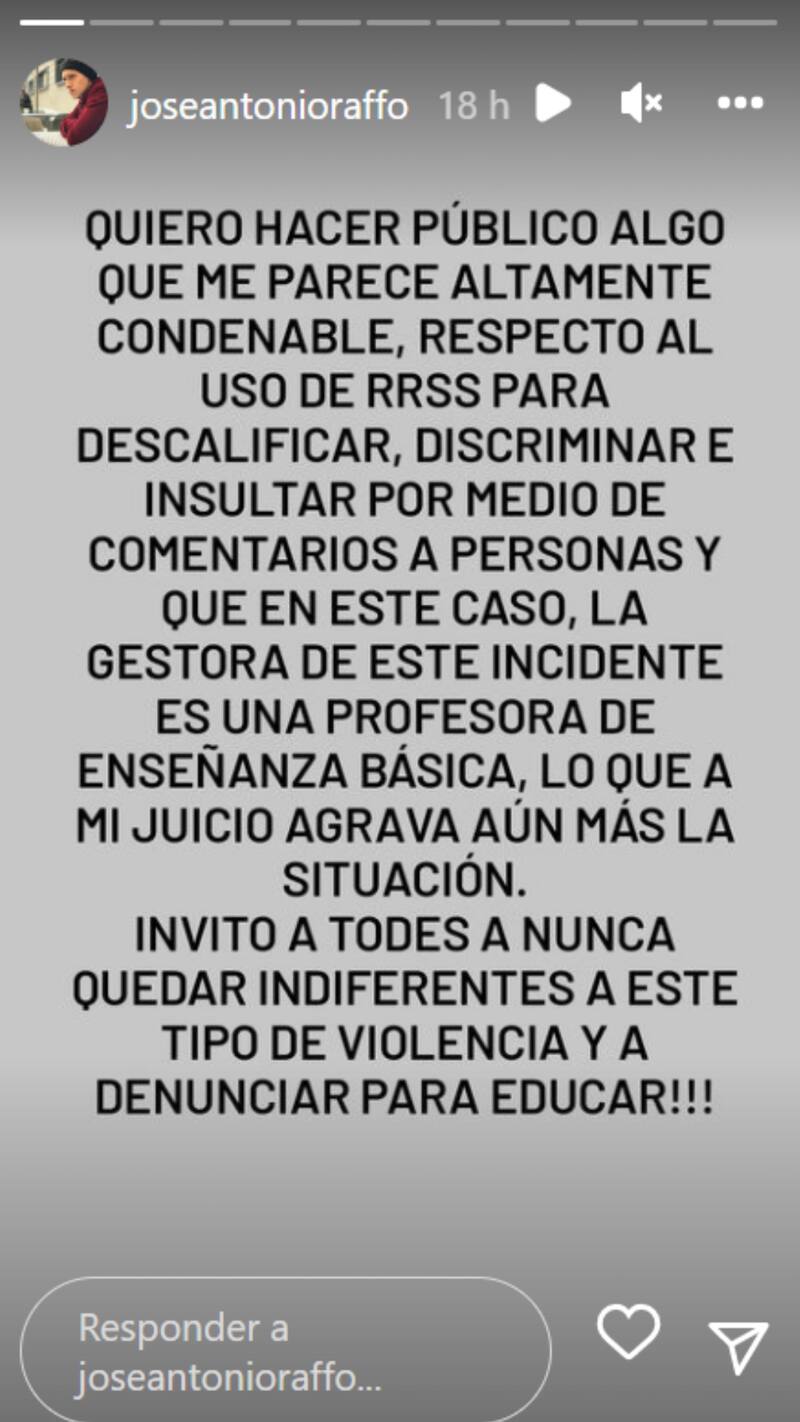 "Invito a todos a nunca quedar indiferentes a este tipo de violencia y a denunciar para educar", agregó José Antonio Raffo en sus redes sociales.