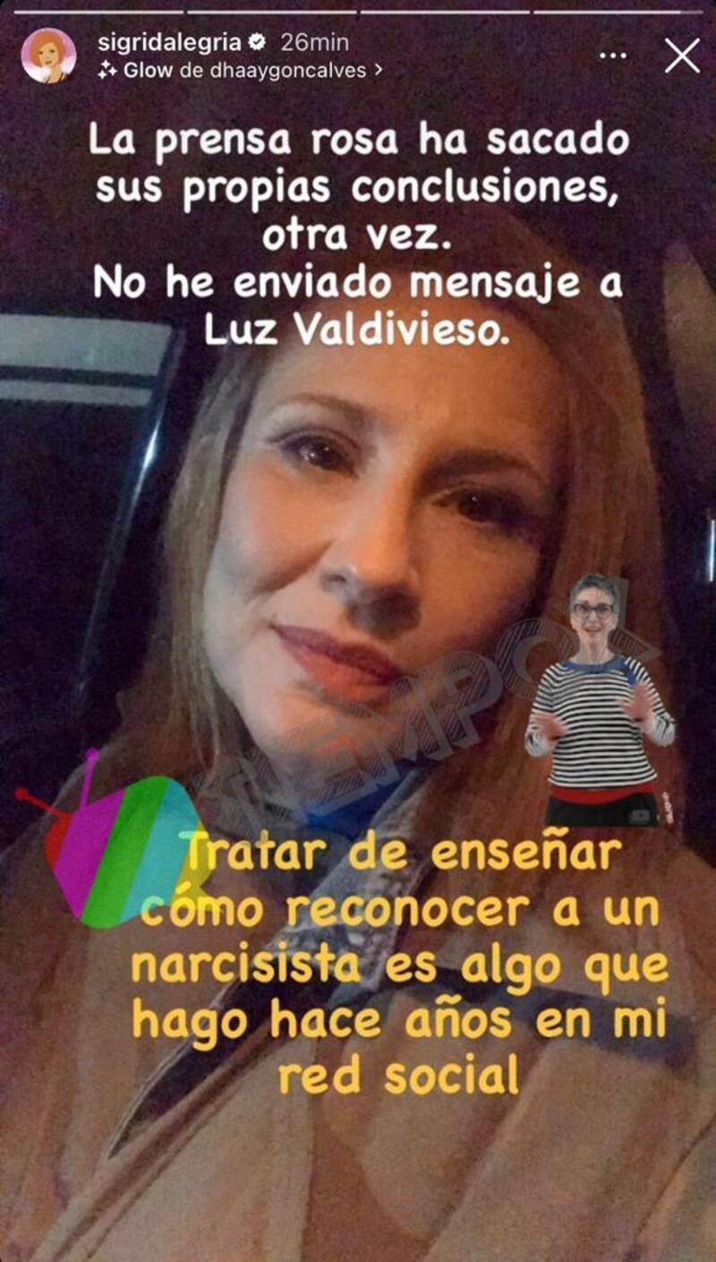 Sigrid Alegría alzó la voz y aclaró el rumor que surgió respecto a la supuesta indirecta que le habría dedicado a Luz Valdivieso a través de sus redes sociales a raíz de la polémica con Claudio Castellón.