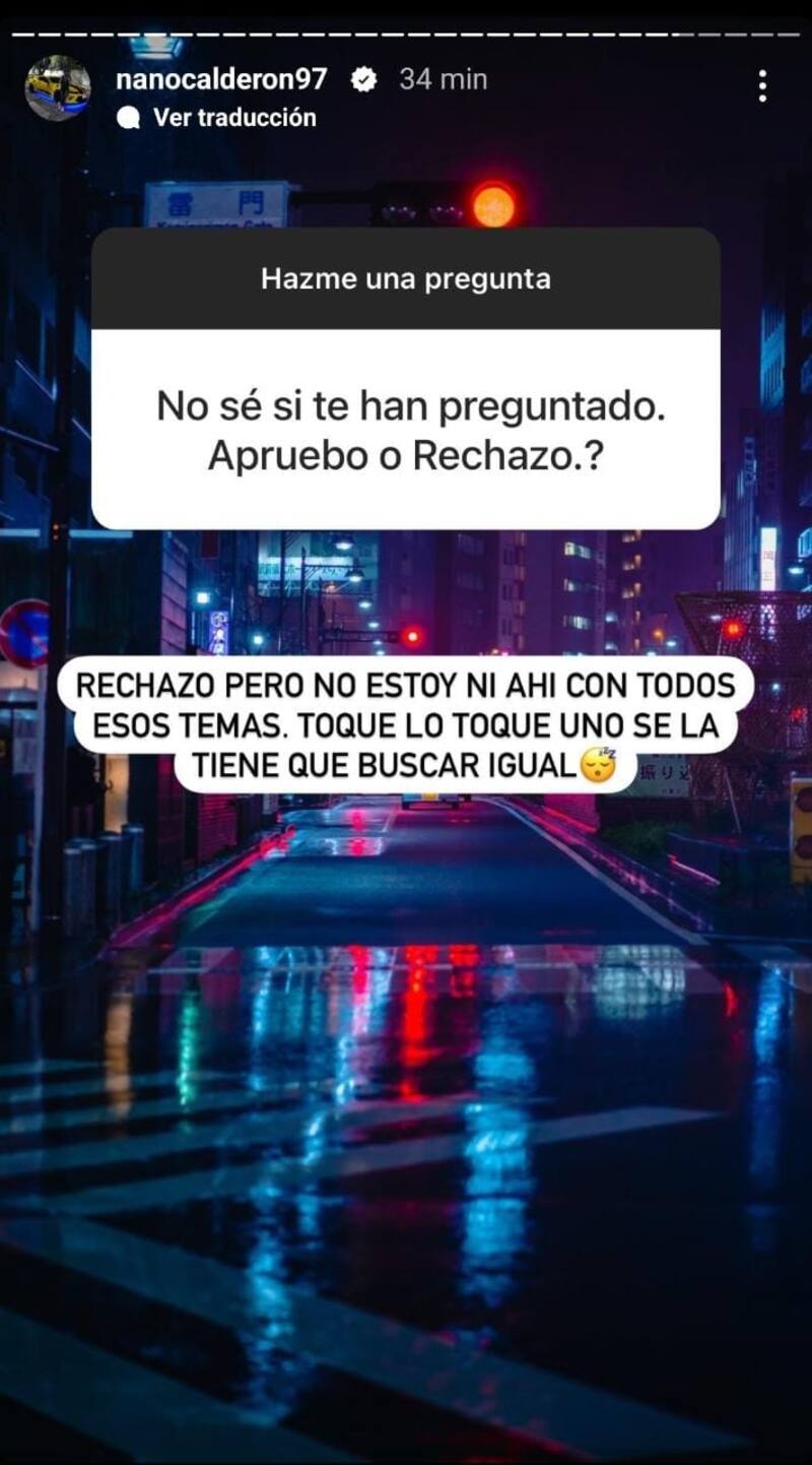 "Rechazo, pero no estoy ni ahí con todos esos temas", reflejó Nano Calderón en su red social, agregando que "toque lo que toque uno se la tiene que buscar igual".