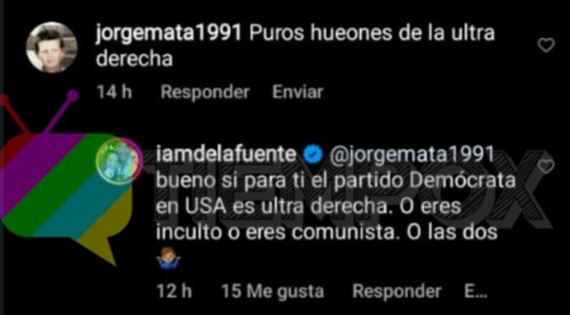 Por ejemplo, un usuario le comentó que se encontraba con "puros hue... de la ultraderecha", a lo que el también esposo de Angélica Castro respondió de forma bastante directa: "Bueno si para tí el Partido Demócrata en Estados Unidos es una derecha, o eres inculto, o eres comunista. O las dos".