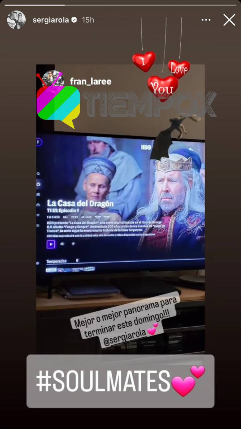 En esa línea, fue que Sergi Arola y Francisca Larêe, se acomodaron en el living de su casa, prendieron la televisión y esperaron esta serie. "Mejor o mejor panorama para terminar este domingo, almas gemelas", escribió la enfermera en sus redes sociales.