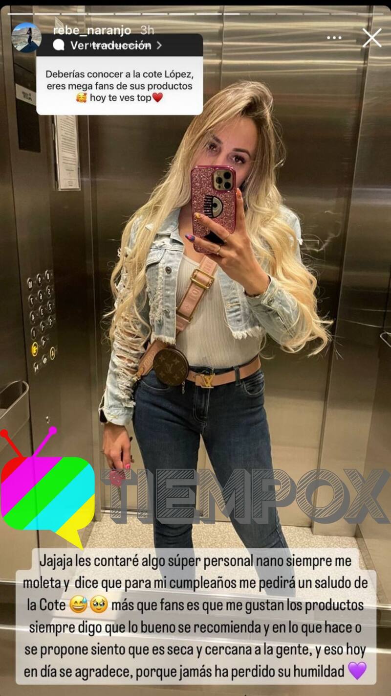 "Les contaré algo súper personal, Nano siempre me molesta y me dice que para mi cumpleaños me pedirá un saludo de la Coté López. Más que fan, es que me gustan los productos, siempre digo que lo bueno se recomienda y en lo que hace o lo que hace, siento que es seca y cercana a la gente y eso hoy en día se agradece, porque jamás ha perdido su humildad", respondió Rebeca Naranjo.