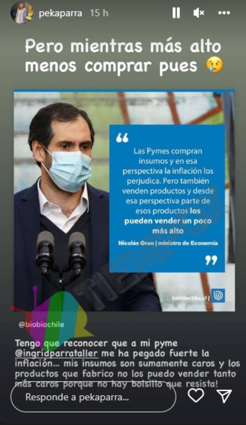 Mientras, Ingrid Parra señaló el error de esta declaración, afirmando que "mientras más alto, menos comprar pues. Tengo que reconocer que a mi pyme me ha pegado fuerte la inflación. Mis insumos son sumamente caros y los productos que fabrico no los puedo vender tano más caros porque no hay bolsillo que resista".