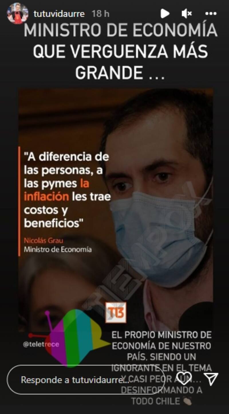 "Ministro de economía, qué vergüenza más grande. El propio ministro de nuestro país siendo ignorante en el tema y casi peor, desinformando a todo Chile", escribió la ex "MasterChef Celebrity".