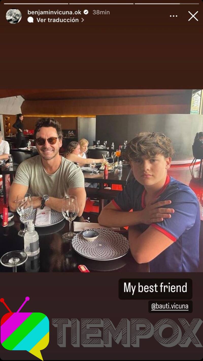 En esa línea, es que Benjamín Vicuña decidió invitar a Bautista Vicuña a almorzar a un restaurante. "Mi mejor amigo", escribió el actor junto a la postal.
