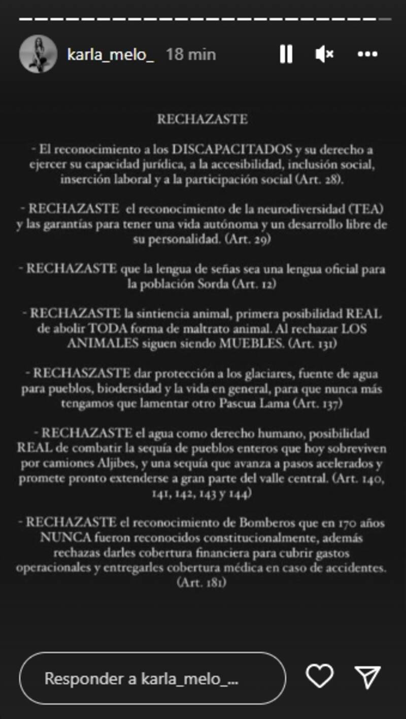 Sin embargo, con el conteo de votos a favor del Rechazo contra el Apruebo, algunas de las figuras mostraron su pesar en redes sociales, compartiendo reflexiones e imágenes ante el resultado con sus seguidores en Instagram y Twitter.