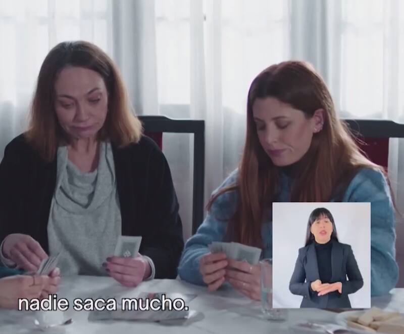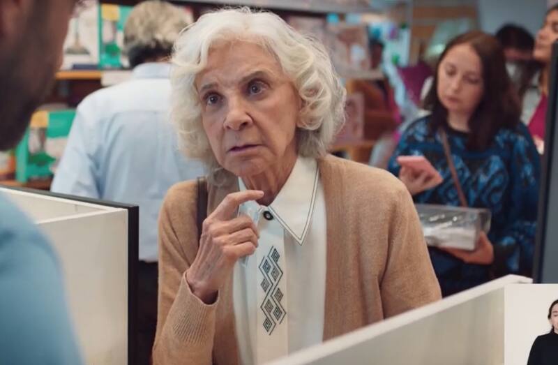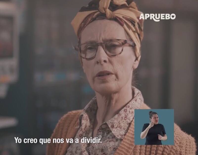 La actriz de "Perdona nuestros pecados" también estuvo presente en un sketch de la franja del Apruebo, donde interpreta a una mujer preocupada por la pensión que recibirá en su jubilación. A pesar de ello, votará Rechazo, pero sus hijas la convencen de lo contrario.