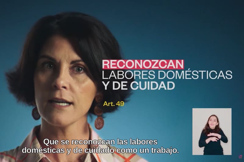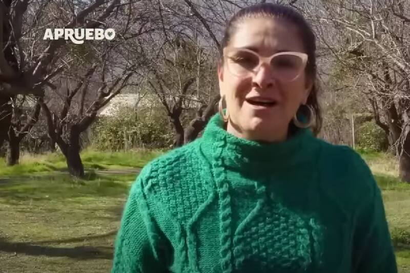 La actriz debutó en la primera jornada de la franja electoral por el Apruebo. Ahí, señaló: "Históricamente las mujeres hemos sostenido Chile. Cuidamos, trabajamos y levantamos a nuestros hogares. Y ese doble o triple trabajo no se valora. Pero la nueva Constitución nos reconoce, respeta y valora nuestros derechos".