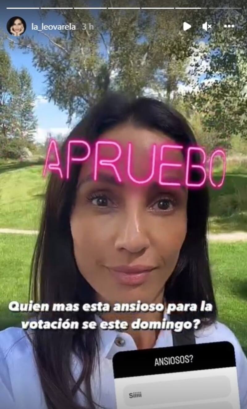 Fue consultada en sus historias de Instagram sobre cuál sería su voto en las próximas elecciones por el Plebiscito Constitucional. "Apruebo, apruebo, apruebo, apruebo, apruebo", expresó.
