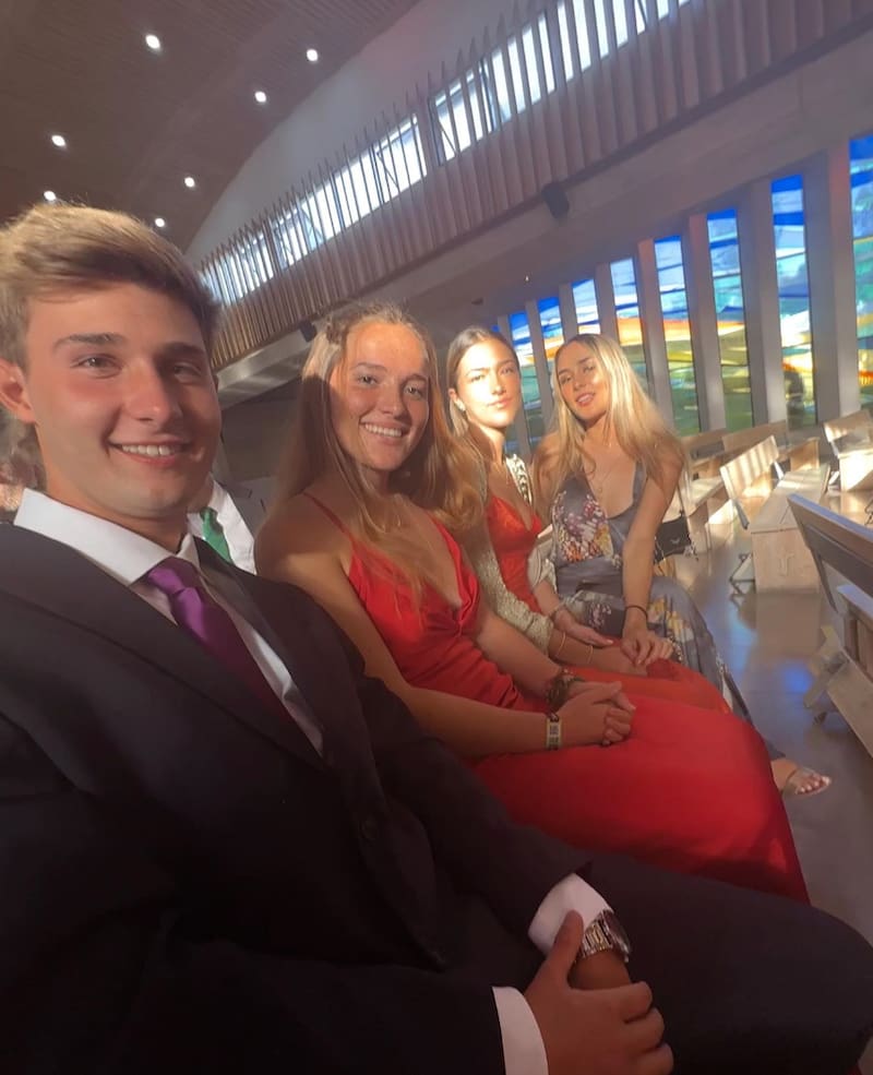 En una de las fotografías, el misterioso joven aparece tomando de la cintura a la estudiante de ingeniería, mientras ambos le sonríen a la cámara.