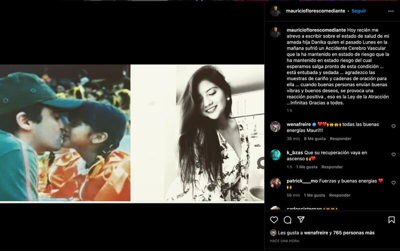 “Hoy recién me atrevo a escribir sobre el estado de salud de mi amada hija, Danika, quien el pasado lunes en la mañana sufrió un accidente cerebrovascular que la ha mantenido en estado de riesgo”, dijo Mauricio Flores.