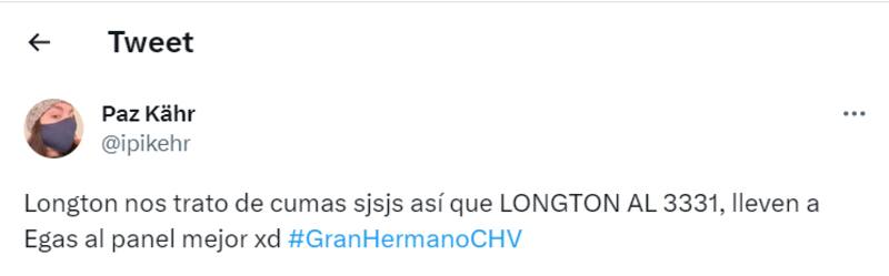 Además, también hubo usuarios de Twitter que pidieron que ya no estuviera en el panel de expertos de “Gran Hermano” Chile debido a sus cuestionados dichos, e incluso que Gonzalo Egas debiera ser su reemplazo.