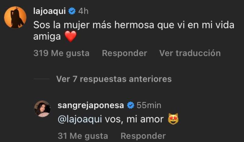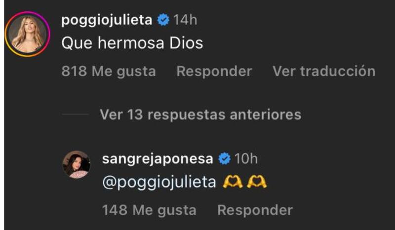 Mientras que, la ex concursante de “Gran Hermano” Argentina, Julieta Poggio, le escribió “que hermosa, Dios”.