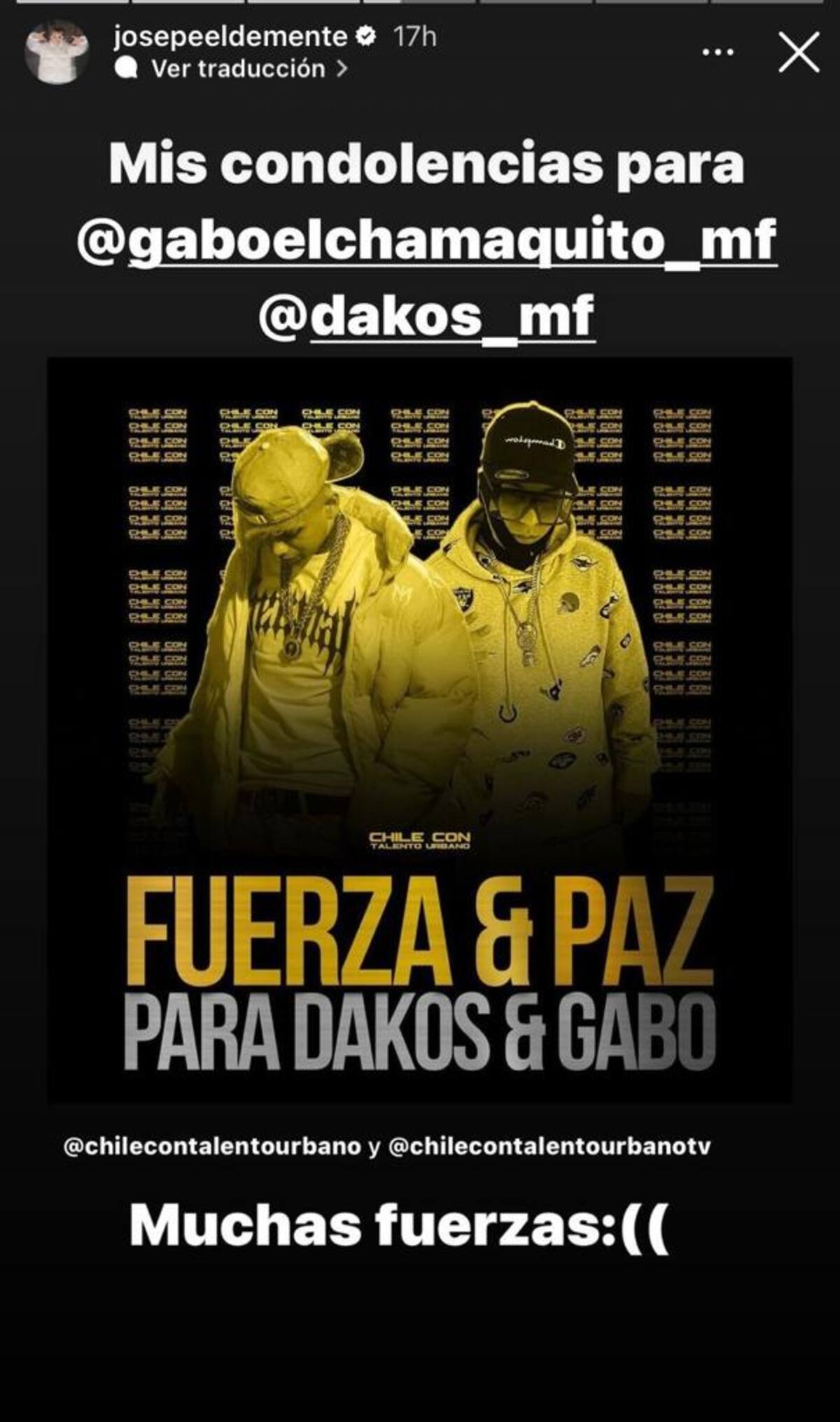 La noticia impactó en la comunidad urbana, tanto así que diversos artistas dedicaron y apoyaron a Gabo El Chamaquito en este sensible momento. Tal es el caso de Pablo Chill-E quien luego de saber lo ocurrido, le dedicó sentidas palabras a su par.