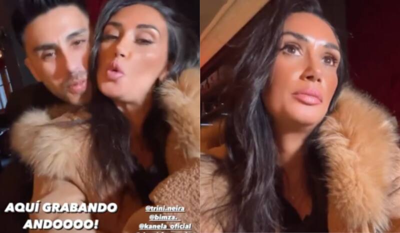 “Aquí estamos grabando people, miren qué bonito. No les puedo mostrar mucho, aquí está la Trini, estamos con los cabezones”, mostró. También se puede ver a Kanela quien saluda a la “fiera” con un beso en la mejilla.