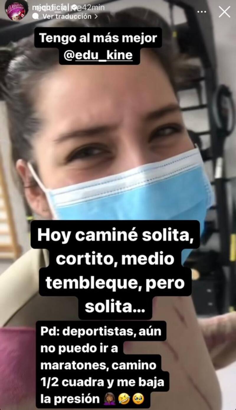 A través de las historias de su pololo Eduardo Carrasco, el kinesiólogo y quien la está tratando para superar la lesión, María José Quintanilla señaló que ya ha podido caminar sola un par de pasos.