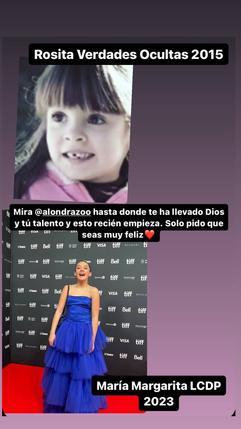 En otra publicación se puede ver un collage en el que se observa a una muy joven actriz en su rol de la versión infantíl de Rosita Mackenna en “Verdades Ocultas” en el 2017, a los 6 años, constrastando con su edad y look actual.