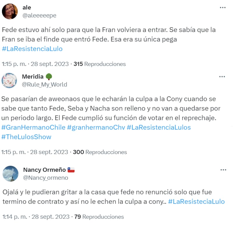 Por lo mismo, hay quienes aseguran que Fede entró a “Gran Hermano” Chile solo con la misión de acercarse y generar un nexo con Constanza Capelli, después votar por Fran, y que cuando ella reingresara al reality dijera públicamente el voto que le dieron para generar alguna hipotética pelea.
